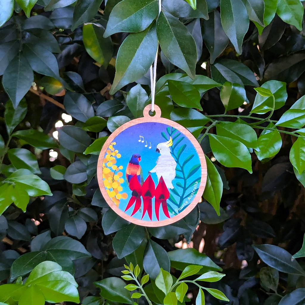 Lorikeet & Cockatoo Wooden Hanging Ornament